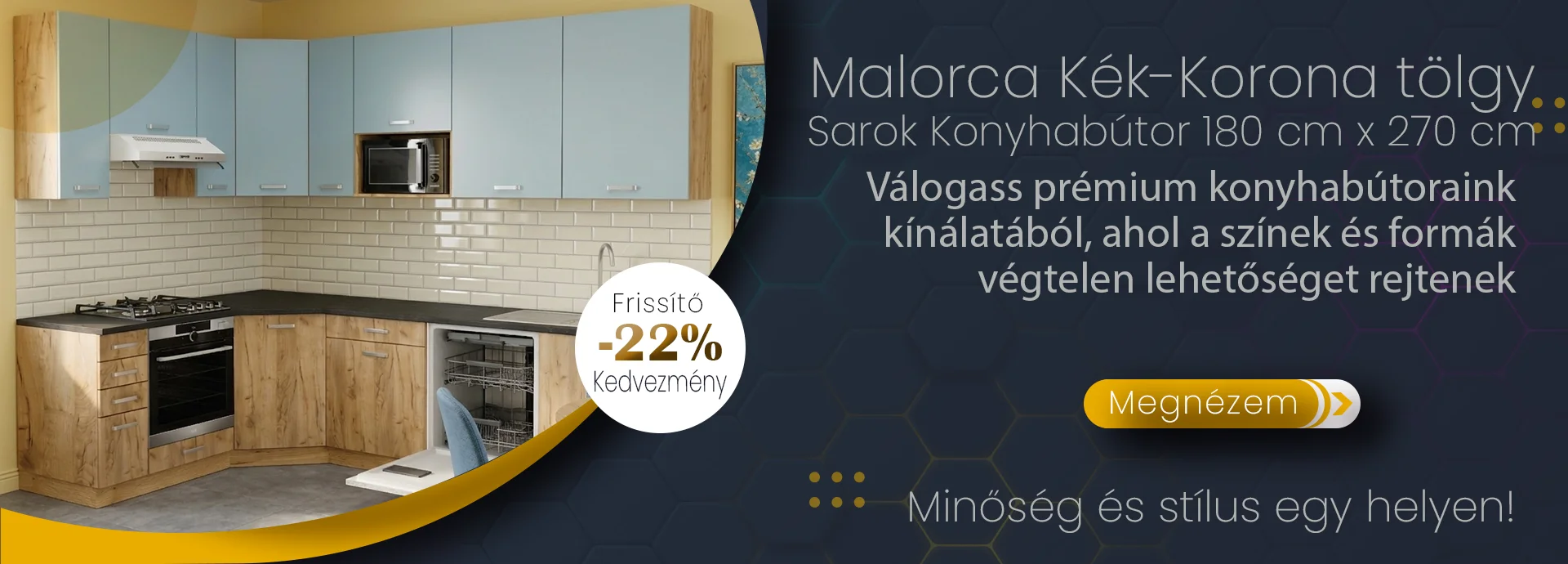 Álom otthonod megálmodása még sosem volt ilyen egyszerű! Webáruházunk széles választékban kínál modern és klasszikus konyhabútorokat, amelyekkel otthonod egyedivé és személyessé teheted. Akár fiatal pároknak, akik most kezdik közös életüket, akár családosoknak, nálunk biztosan megtalálod a számodra tökéletes darabokat.