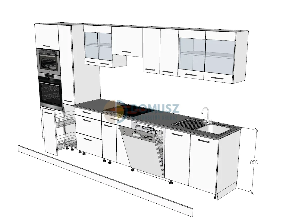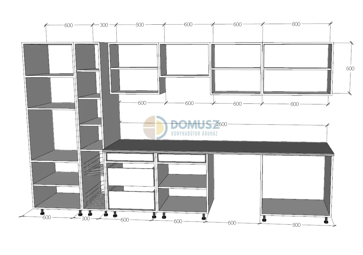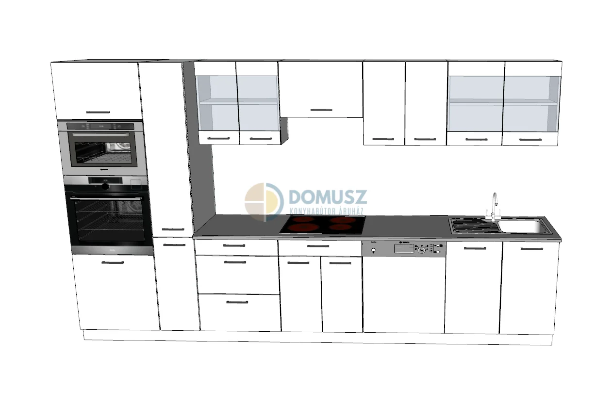 Az elemek mérete a termékleírásnál található. Amennyiben a konyhasort ki szeretné még pluszban elemekkel egészíteni, az itt található elem kínálatból választhat.